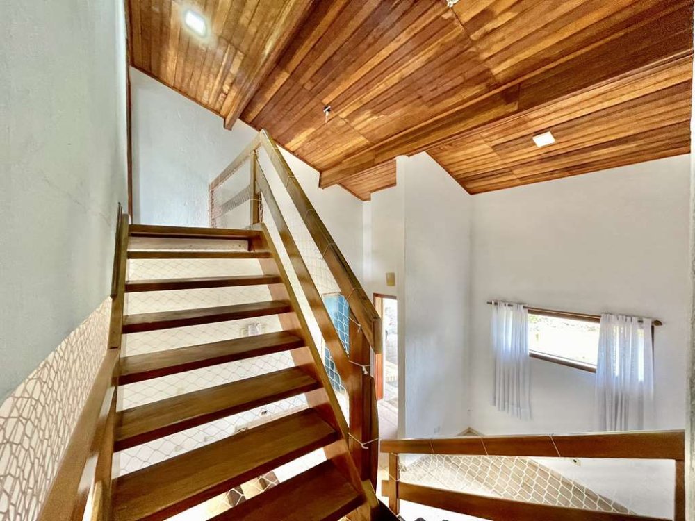 Com cinco quartos, incluindo duas suítes e uma suíte "master", os espaços internos são elegantemente distribuídos em pequenas diferenças de níveis, proporcionando uma atmosfera única. A presença de uma lareira cria um ambiente acolhedor, enquanto as várias salas oferecem flexibilidade para diferentes usos.