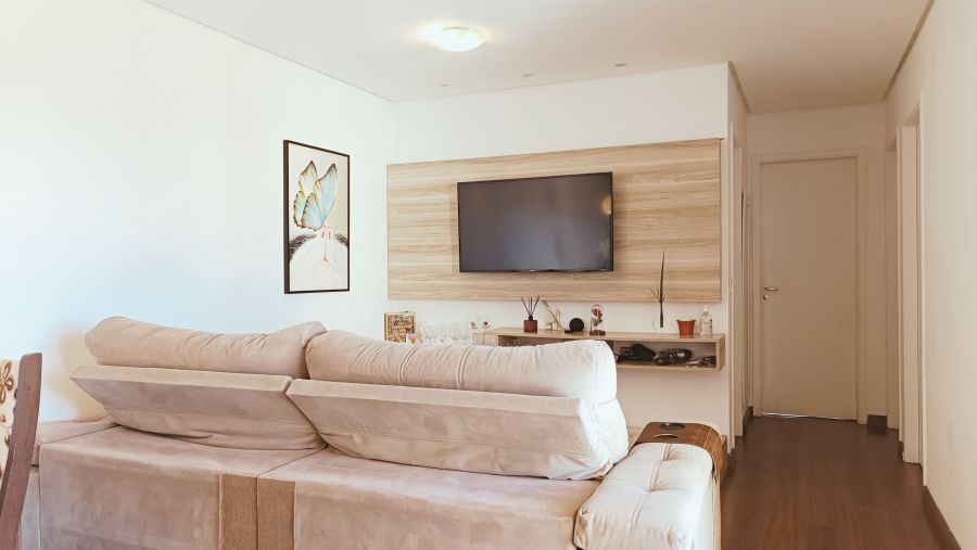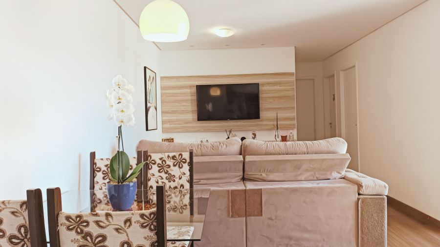 Sala Ampla e Iluminada: Uma sala espaçosa, com janelas grandes e integração com a varanda. Perfeita para receber amigos e familiares em um ambiente agradável e com muita iluminação natural.