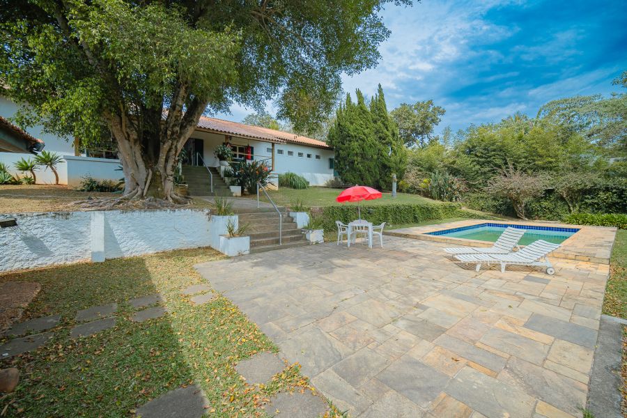 Encante-se com esta charmosa casa térrea construída em um terreno de 1.800 m², com 600 m² de área construída, oferecendo espaço, conforto e lazer em meio à natureza.