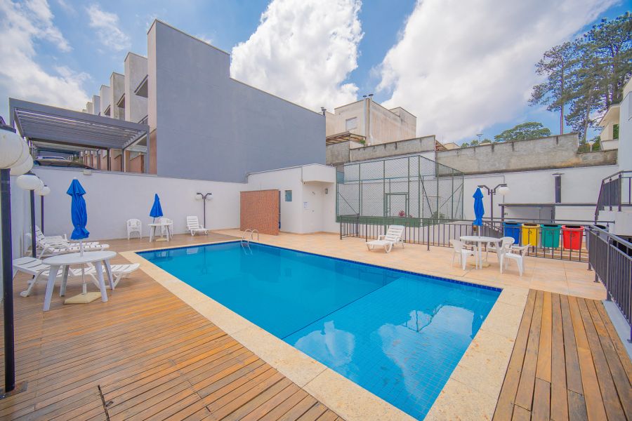 O imóvel oferece entrada de serviço lateral coberto e duas vagas na garagem, garantindo praticidade e funcionalidade. No condomínio, você terá acesso a uma infraestrutura completa de lazer: piscina, quadra, playground, área fitness e espaço gourmet com churrasqueira.