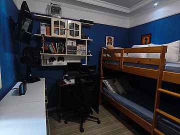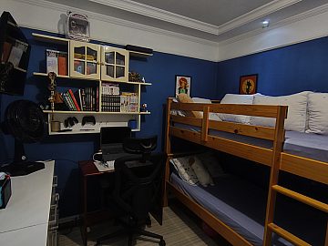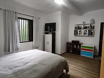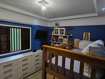 A ala íntima foi projetada para o descanso pleno, contando com dois dormitórios, sendo um deles uma suíte confortável, ideal para momentos de refúgio e renovação. A estrutura da casa ainda contempla uma área de serviço funcional e suporte para internet banda larga, atendendo às demandas contemporâneas de quem precisa de conectividade e organização no dia a dia.